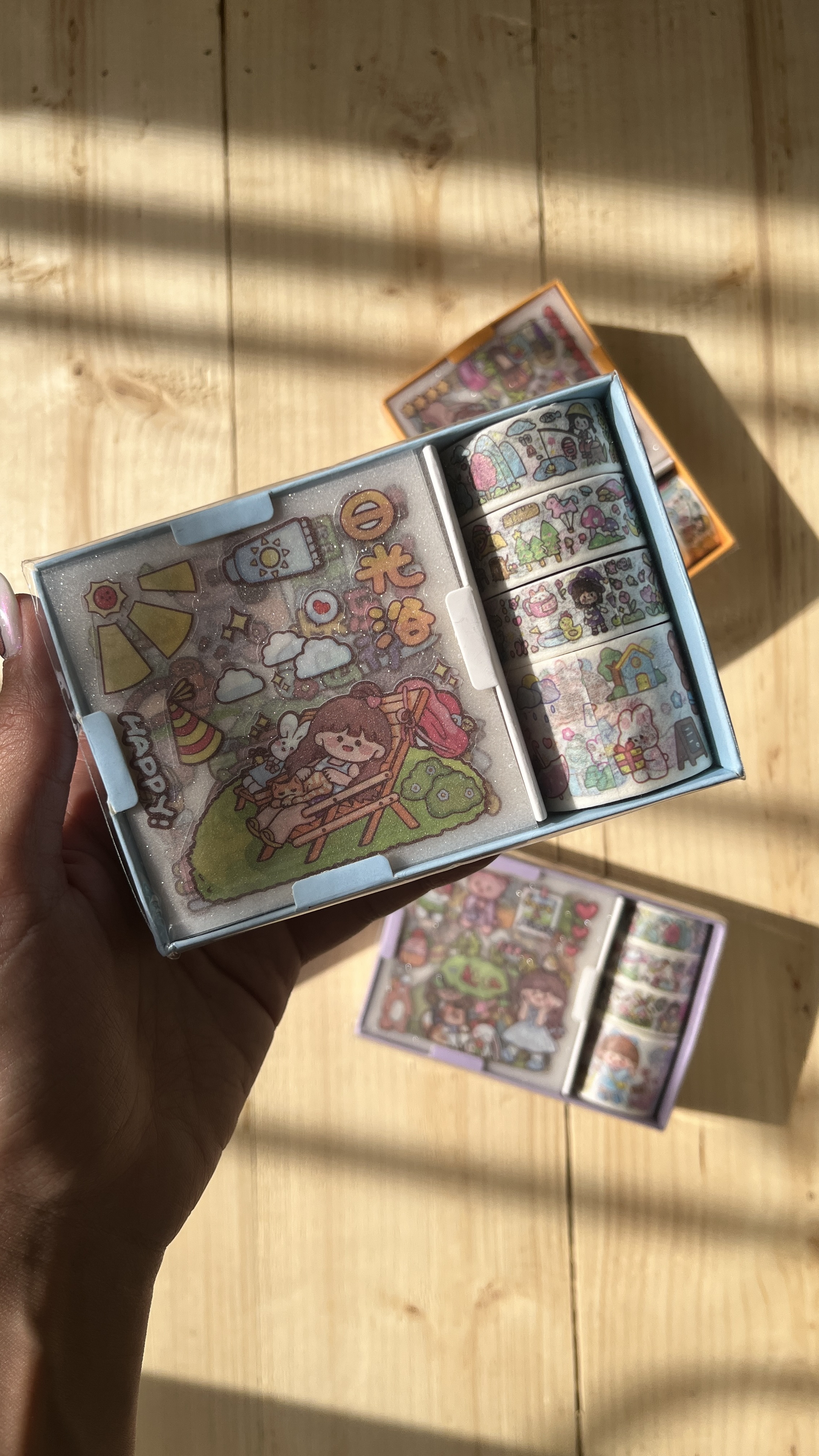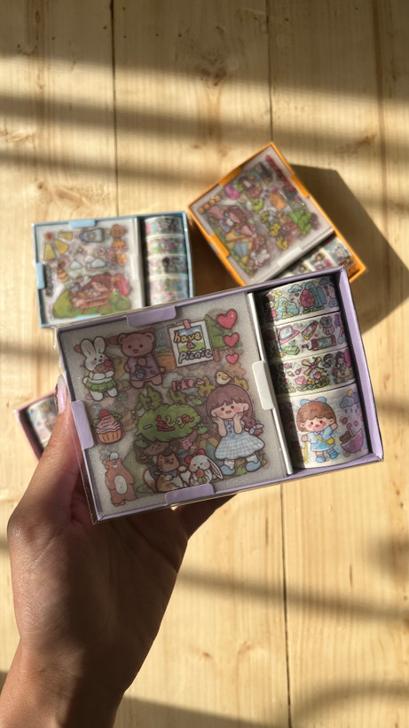 استیکر فانتزی جعبه دار کوچک برش خورده وچسب واشی